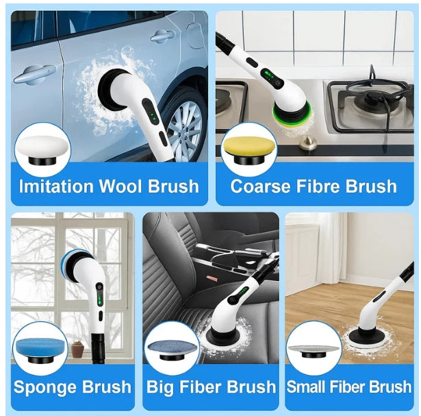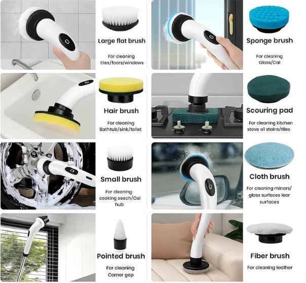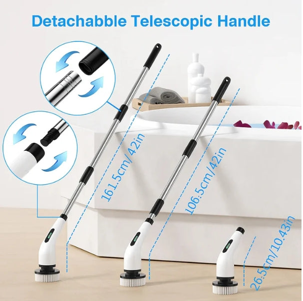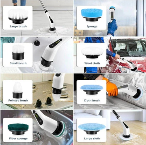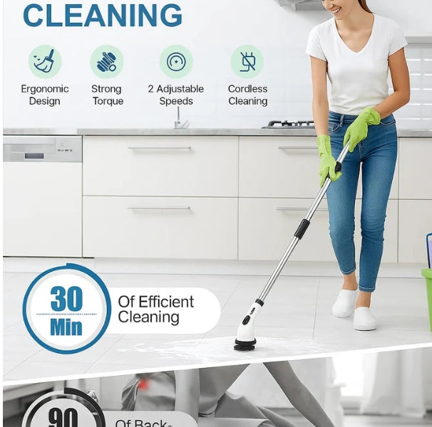 Outfitlostore's Electric Spin Scrubber is your ultimate cleaning companion. This cordless scrubber features a powerful motor, adjustable handle, and a long-lasting rechargeable battery, perfect for tackling bathrooms, bathtubs, kitchens, windows, and even car surfaces. With 9 versatile brush heads and dual-speed settings, it removes grime, stains, and build-up effortlessly, no bending or straining needed. Clean smarter, not harder, with this lightweight, high-speed tool designed to simplify your daily cleaning routine.